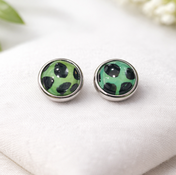 Ajoutez une touche d’originalité à votre style avec ces boucles d’oreilles puces motif léopard vert, à la fois modernes et élégantes. Leur design unique associe un vert lumineux à des touches noires pour un effet tendance et audacieux.